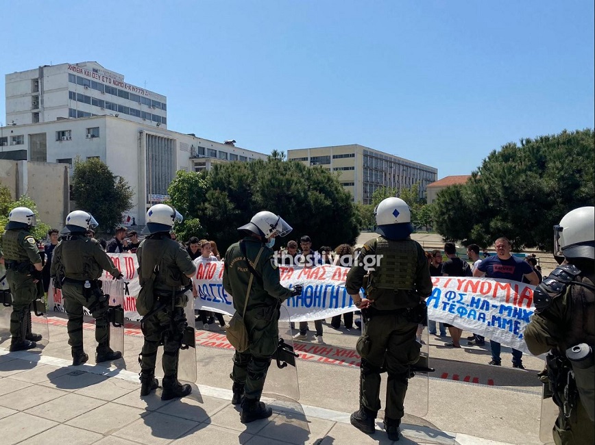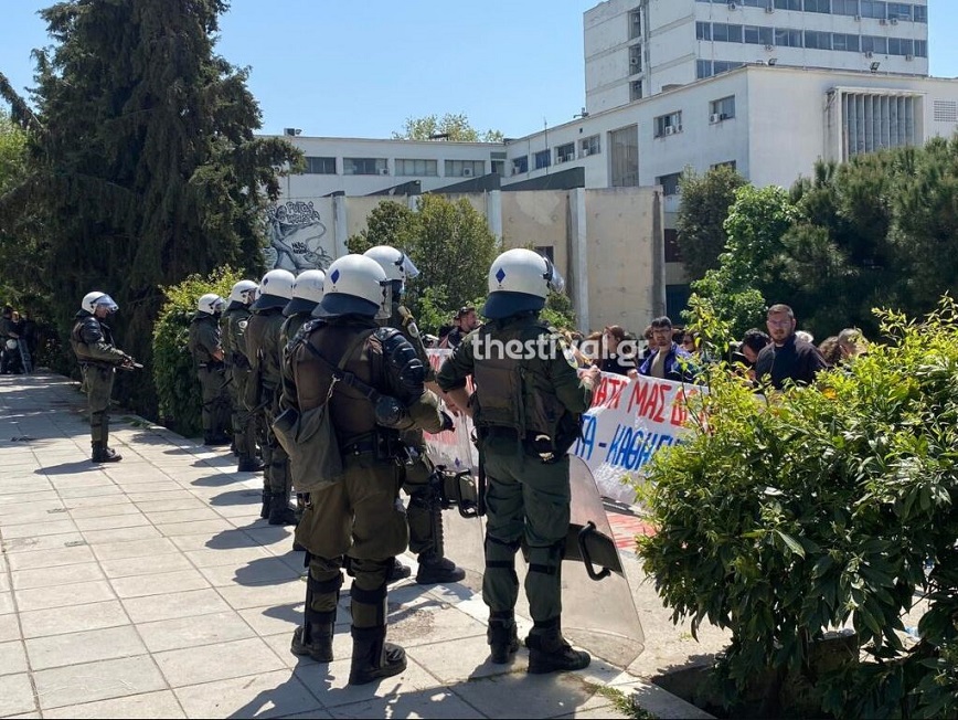 Ένταση υπήρξε μεταξύ των δυνάμεων των ΜΑΤ και των φοιτητών που είχαν συγκεντρωθεί στη ΣΘΕ (Σχολή Θετικών Επιστημών) του ΑΠΘ, καθώς κατά την αποχώρηση των δυνάμεων της αστυνομίας, υπήρξαν έντονες αποδοκιμασίες και καταγγελίες για «επίθεση».