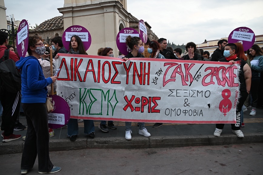 Η συγκέντρωση διαμαρτυρίας ξεκίνησε στο Μοναστηράκι, με αποτέλεσμα να κλείσει η οδός Αθηνάς, ενώ σχετικό κάλεσμα είχε εκδώσει η σελίδα «Justice For Zak/Zackie» περίπου μία ώρα μετά την ανακοίνωση της απόφασης του δικαστηρίου.