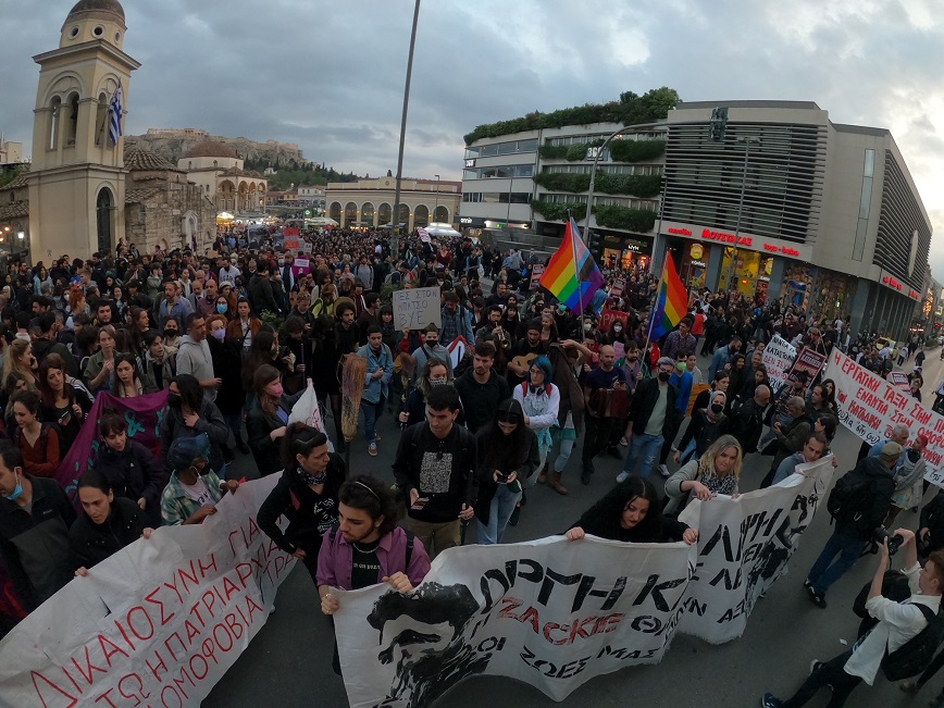 Πορεία στο κέντρο της Αθήνας πραγματοποιήθηκε το απόγευμα της Τρίτης (3/ 5), λίγη ώρα μετά την οριστική απόφαση στη δίκη του Ζακ Κωστόπουλου, όπου αθωώθηκαν οι αστυνομικοί που ενεπλάκησαν στην υπόθεση, ενώ καταδικάστηκαν ο μεσίτης και ο κοσμηματοπώλης.