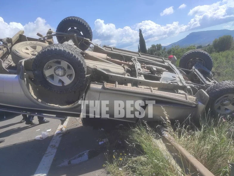 Σύμφωνα με το thebest.gr το σοκαριστικό τροχαίο συνέβη κάτω από αδιευκρίνιστες συνθήκες, με το αγροτικό να ανατρέπεται και να καρφώνεται με την οροφή στις προστατευτικές μπάρες του δρόμου.