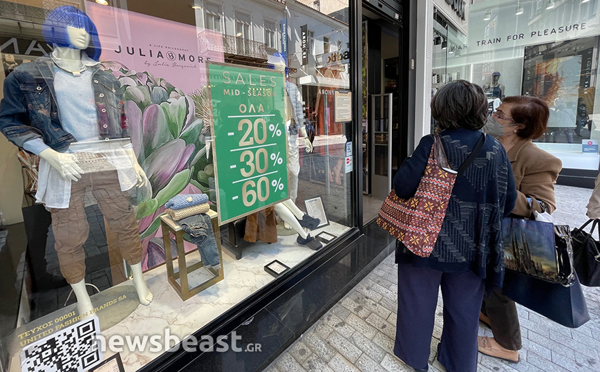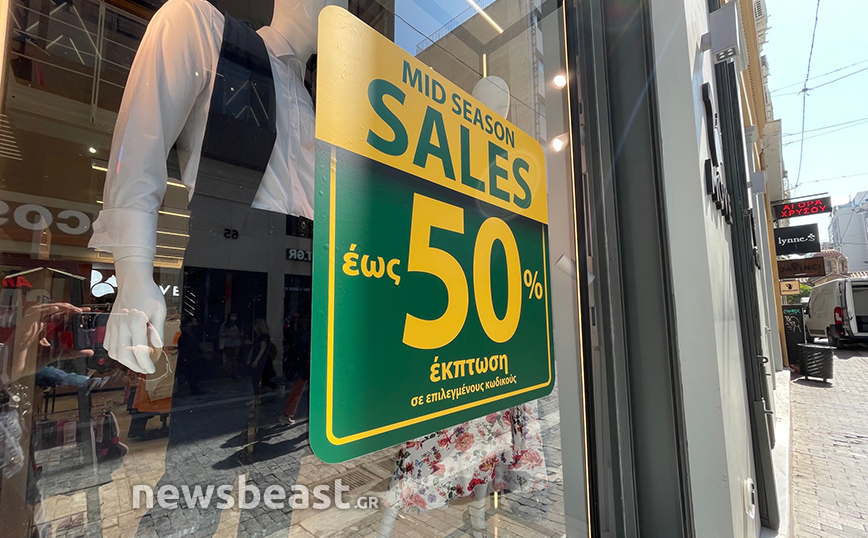 Στις βιτρίνες των καταστημάτων τα ποσοστά εκπτώσεων που αναγράφονται κυμαίνονται από 20-60%, ενώ μέχρι στιγμής η κίνηση στην Ερμού φαίνεται να είναι υποτονική.