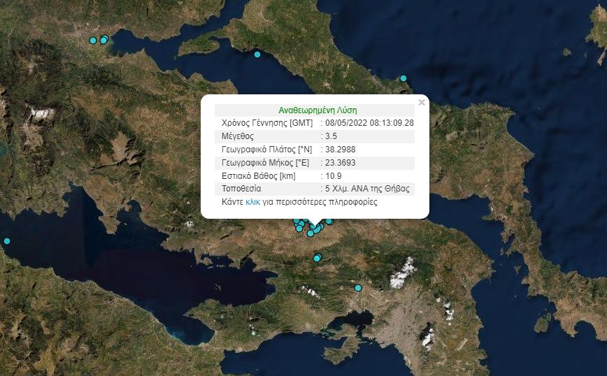 Σεισμική δόνηση μεγέθους 3,5 βαθμών της κλίμακας Ρίχτερ σημειώθηκε λίγο μετά τις 11:00 στη Θήβα, σύμφωνα με το Γεωδυναμικό Ινστιτούτο του Εθνικού Αστεροσκοπείου Αθηνών.