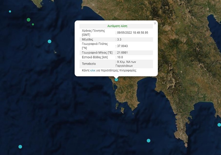 Μάλιστα, το Ευρωμεσογειακό Σεισμολογικό Κέντρο, ανέφερε ότι η σεισμική δόνηση είχε μέγεθος 3,4 βαθμών της κλίμακας Ρίχτερ και το επίκεντρο ήταν 15 χιλιόμετρα, νοτιοανατολικά των Γαργαλιάνων.