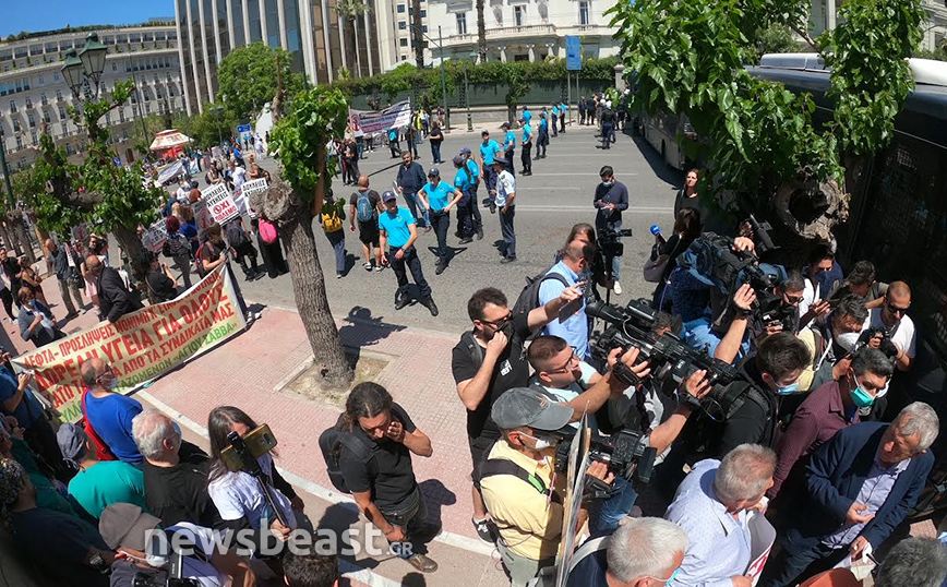 Όπως φαίνεται στο βίντεο του Newsbeast ο πρόεδρος της ΠΟΕΔΗΝ, Μιχάλης Γιαννάκος προσπάθησε να περάσει στο πλάγιο της τμήμας της Βουλής και οι αστυνομικοί τον απώθησαν.