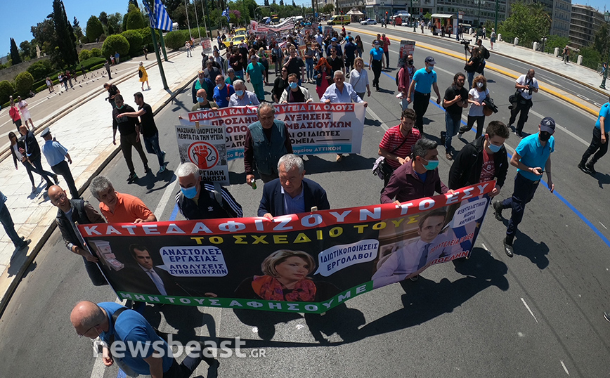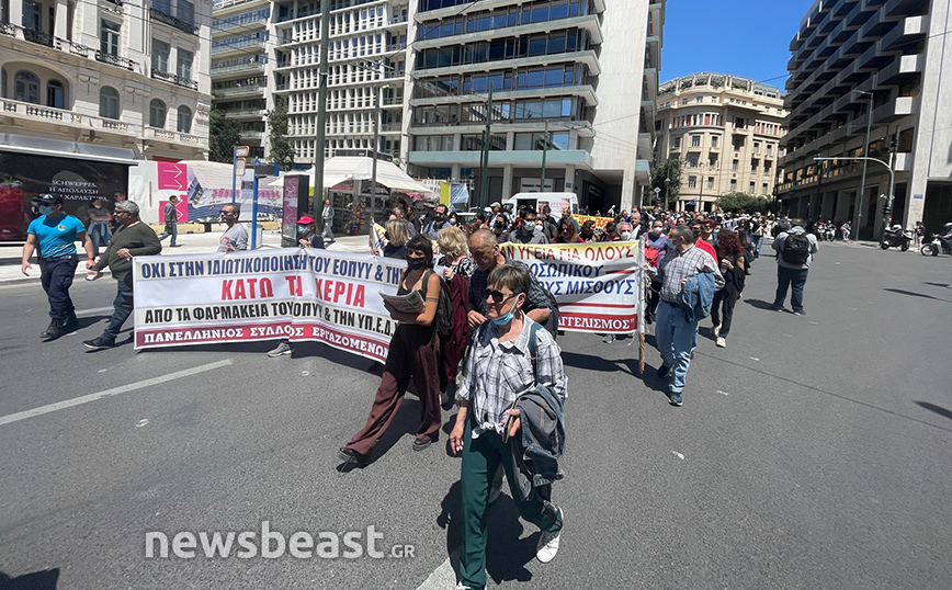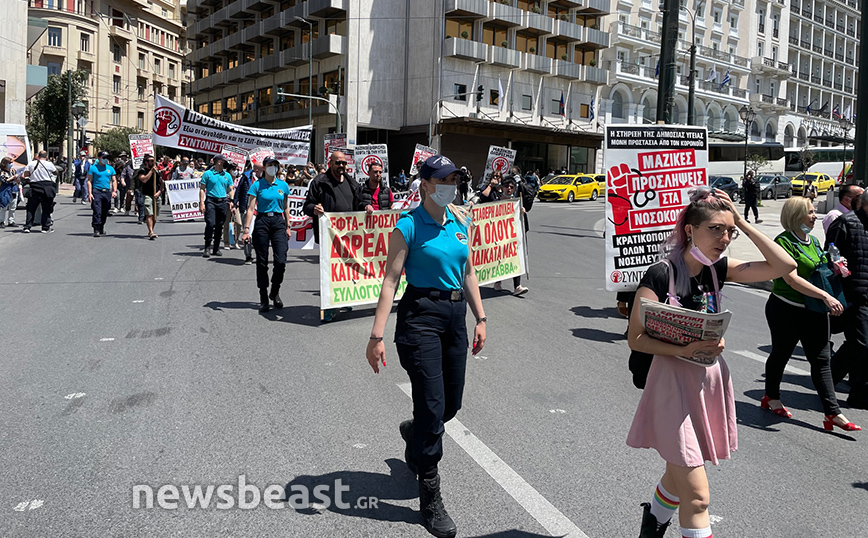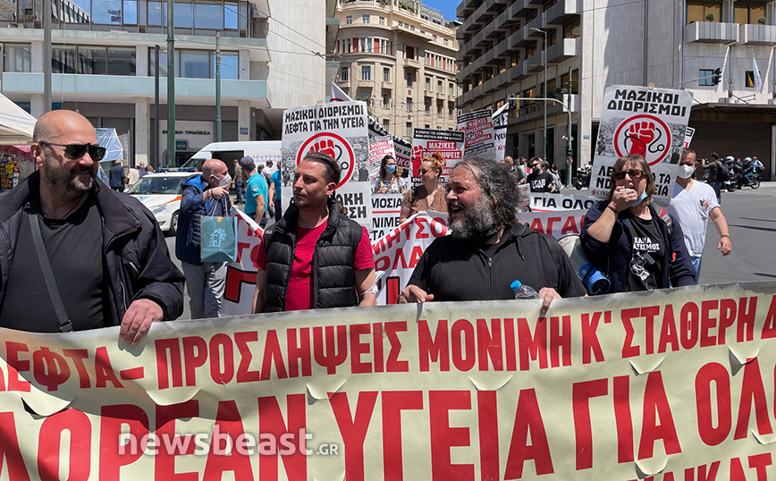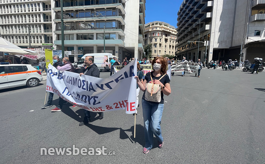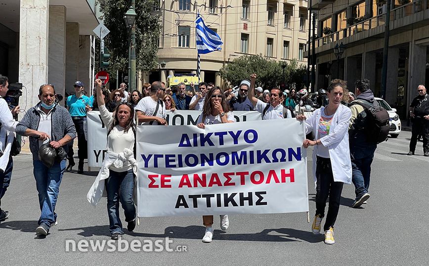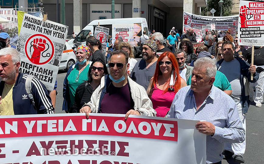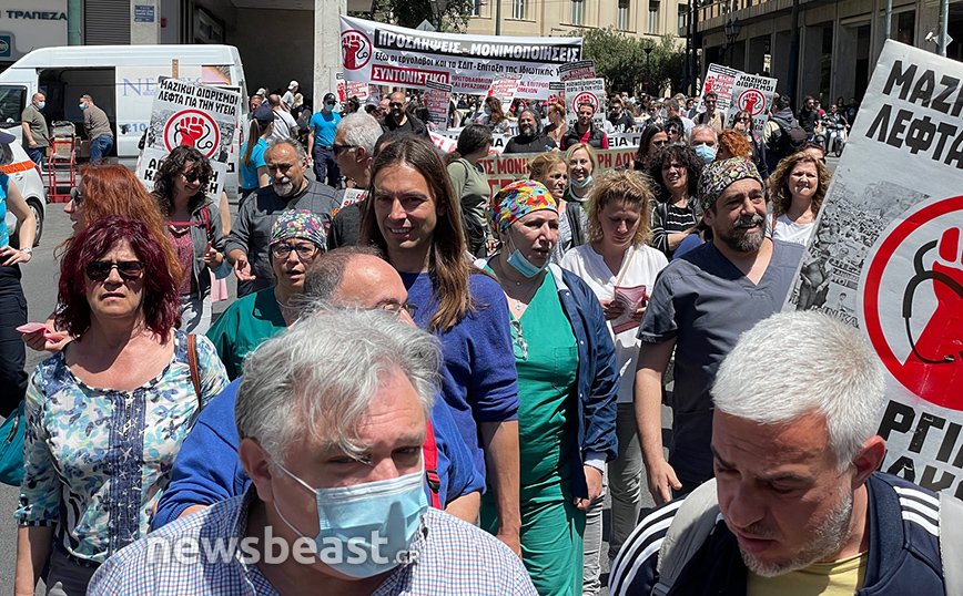 Πορεία στο κέντρο της Αθήνας πραγματοποίησαν την Τρίτη (10/5) υγειονομικοί οι οποίοι έχουν είχαν προκηρύξει στάση εργασίας σήμερα από τις 11:00 έως τις 15:00 αντιδρώντας στο νομοσχέδιο που ψηφίζεται στη Βουλή και σύμφωνα με την ΠΟΕΔΗΝ «ιδιωτικοποιεί την Πρωτοβάθμια Περίθαλψη και καθιερώνει τα απογευματινά χειρουργεία στα Νοσοκομεία με πληρωμή».