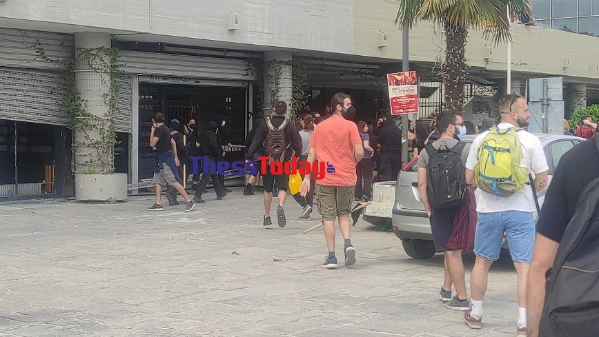 Όπως αναφέρει το thesstoday.gr, έκαναν «γυαλιά-καρφιά» την είσοδο της Πρυτανείας, με εκτεταμένες φθορές να σημειώνονται στην είσοδο του κτιρίου.