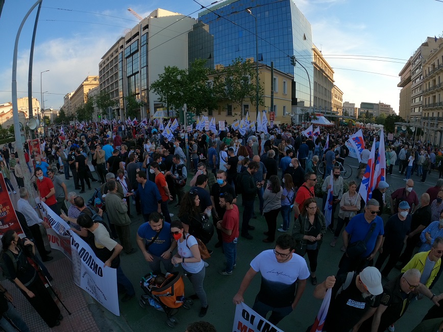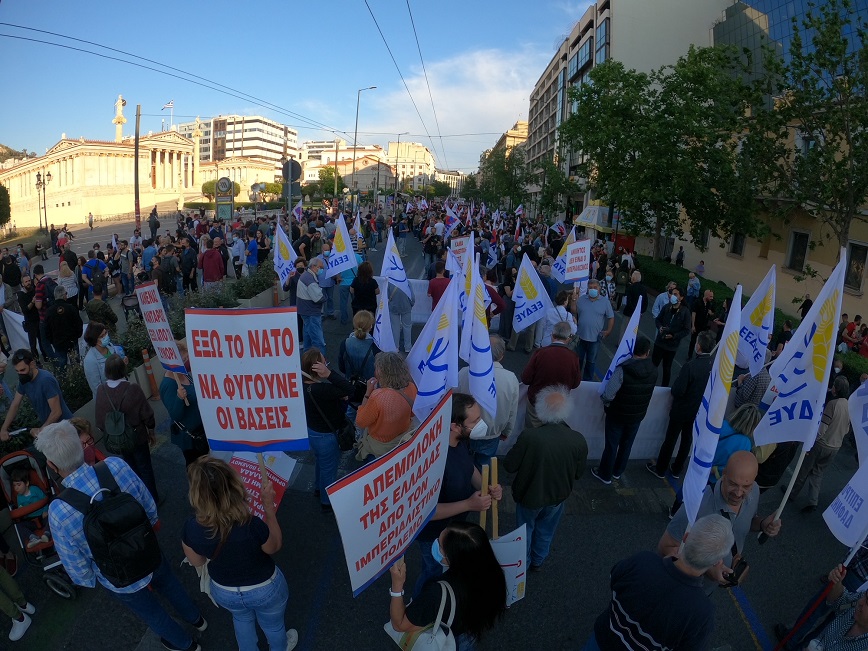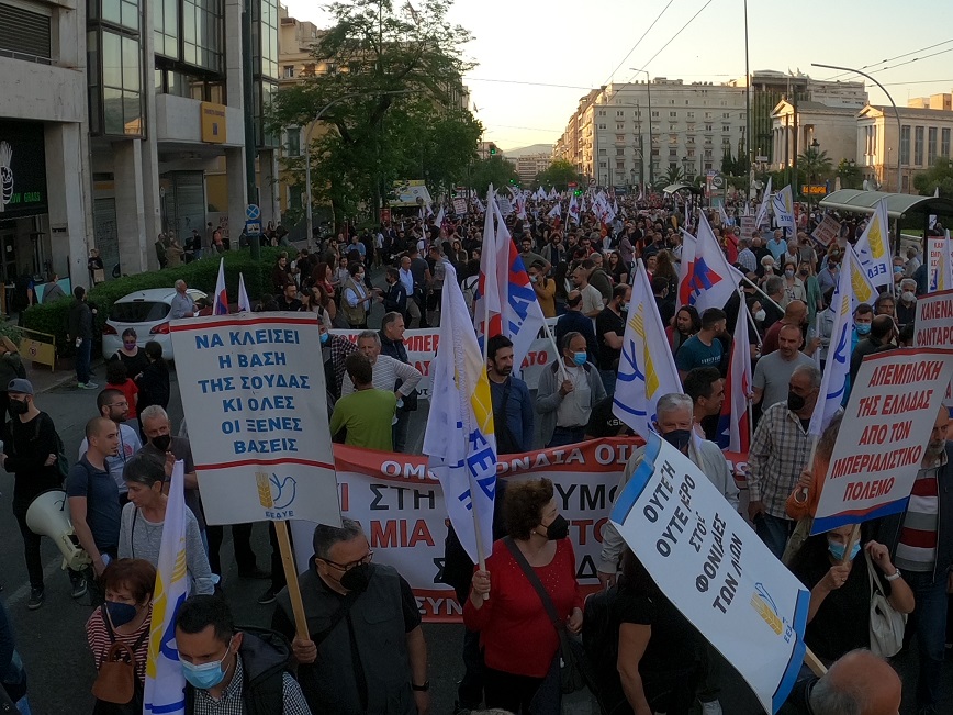 Παράλληλα, πρόσθεσε ότι «καλεί τα εργατικά σωματεία και τις συνδικαλιστικές οργανώσεις, τους φορείς των αυτοπασχολουμένων, των γυναικών, της νεολαίας, όλο το λαό σε κλιμάκωση του αγώνα ενάντια στην Ελληνοαμερικανική Συμφωνία για τις Βάσεις, που η κυβέρνηση της ΝΔ φέρνει στη Βουλή με τη διαδικασία του κατεπείγοντος! Στόχος τους είναι να έχει επικυρωθεί μέχρι το ταξίδι του πρωθυπουργού, Κυριάκου Μητσοτάκη, στις ΗΠΑ στις 16 Μάη και της συνάντησης που θα έχει με τον Αμερικανό Πρόεδρο Μπάιντεν».