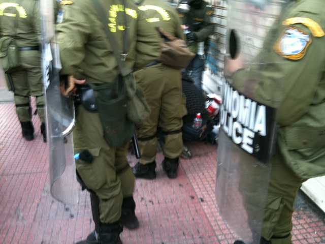 Πριν από μερικά λεπτά, μια γυναίκα τραυματίστηκε στην πορεία από φωτοβολίδα, στην διασταύρωση των οδών Πανεπιστημίου και Ιπποκράτους.