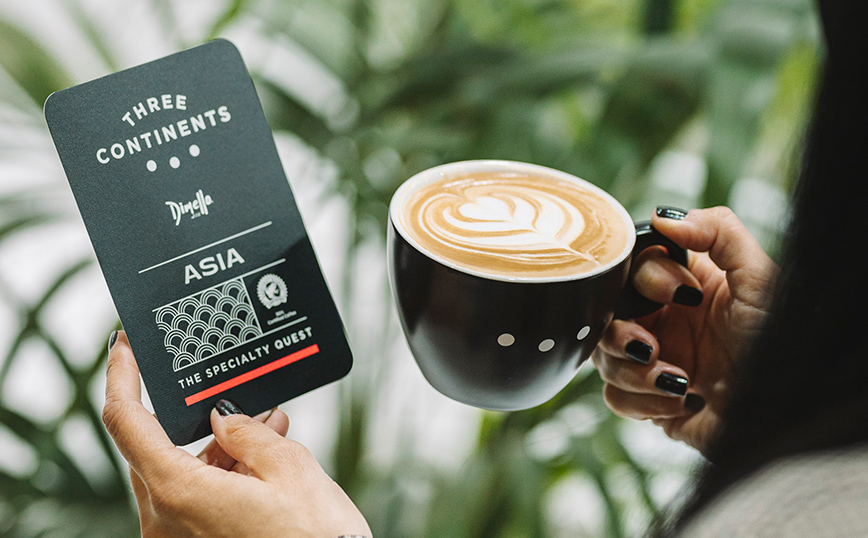 Ο Dimello παρουσιάζει τη νέα σειρά χαρμανιών THREE CONTINENTS που προσφέρουν ένα ταξίδι σε τρεις ηπείρους με προορισμό τον τέλειο καφέ. Κάθε χαρμάνι αποτελείται από κόκκους 100% Arabica και περιλαμβάνει τις γεύσεις, τα αρώματα και το ξεχωριστό χαρακτήρα κάθε μιας από τις τρεις ηπείρους προέλευσης, Αμερικής, Ασίας και Αφρικής. Οι τρεις αυτές ήπειροι, τα τρία διαφορετικά σημεία στον ορίζοντα με τη δική τους κουλτούρα, ήταν η έμπνευση που οδήγησε στο λογότυπο με τις τρεις τελείες.