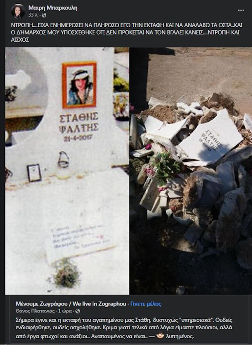 Στη συνέχεια, η Μαίρη Μπάρκουλη επανήλθε με νεότερη ανάρτηση στην οποία τόνισε πως μίλησε με το δήμαρχο και ενημερώθηκε γιατί αποφασίστηκε η εκταφή του Στάθη Ψάλτη. Η ίδια έγραψε το εξής: