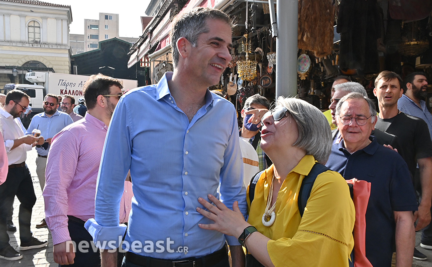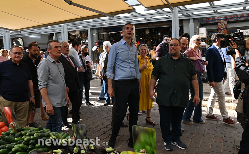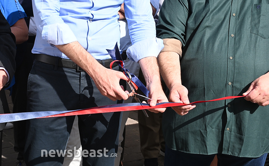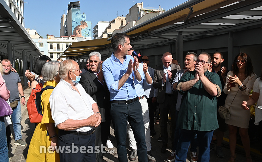 Ο Κώστας Μπακογιάννης έκοψε την κόκκινη κορδέλα που είχε τοποθετηθεί μπροστά από την ανανεωμένη λαχαναγορά της Βαρβακείου και συνομίλησε με τους επιχειρηματίες που διατηρούν εκεί καταστήματα.