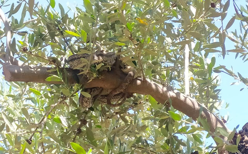 Τρόμο ένιωσε ένας αγρότης στα Φιλιατρά όταν, κατά τη διάρκεια εργασιών είδε δύο φίδια περίπου 3 μέτρων αν έχουν τυλιχτεί πάνω από ένα ελαιόδεντρο.