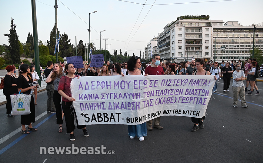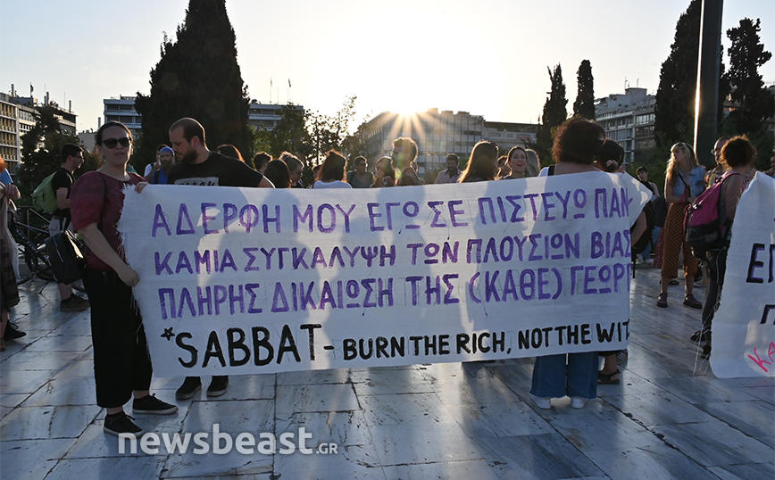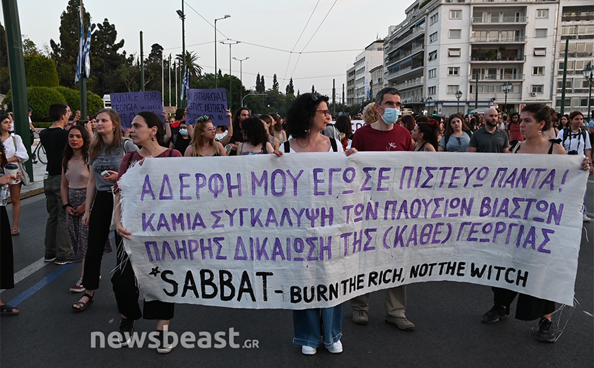 «Αδερφή μου εγώ σε πιστεύω πάντα! Καμία συγκάλυψη του κυκλώματος πλουσίων βιαστών. Πλήρη δικαίωση για τον ομαδικό βιασμό της Γεωργίας Μπίκα. SABBAT Burn the rich not the witch» έγραφε η αφίσα με την οποία καλούσε στην συγκέντρωση και την πορεία στην πλατεία Συντάγματος.