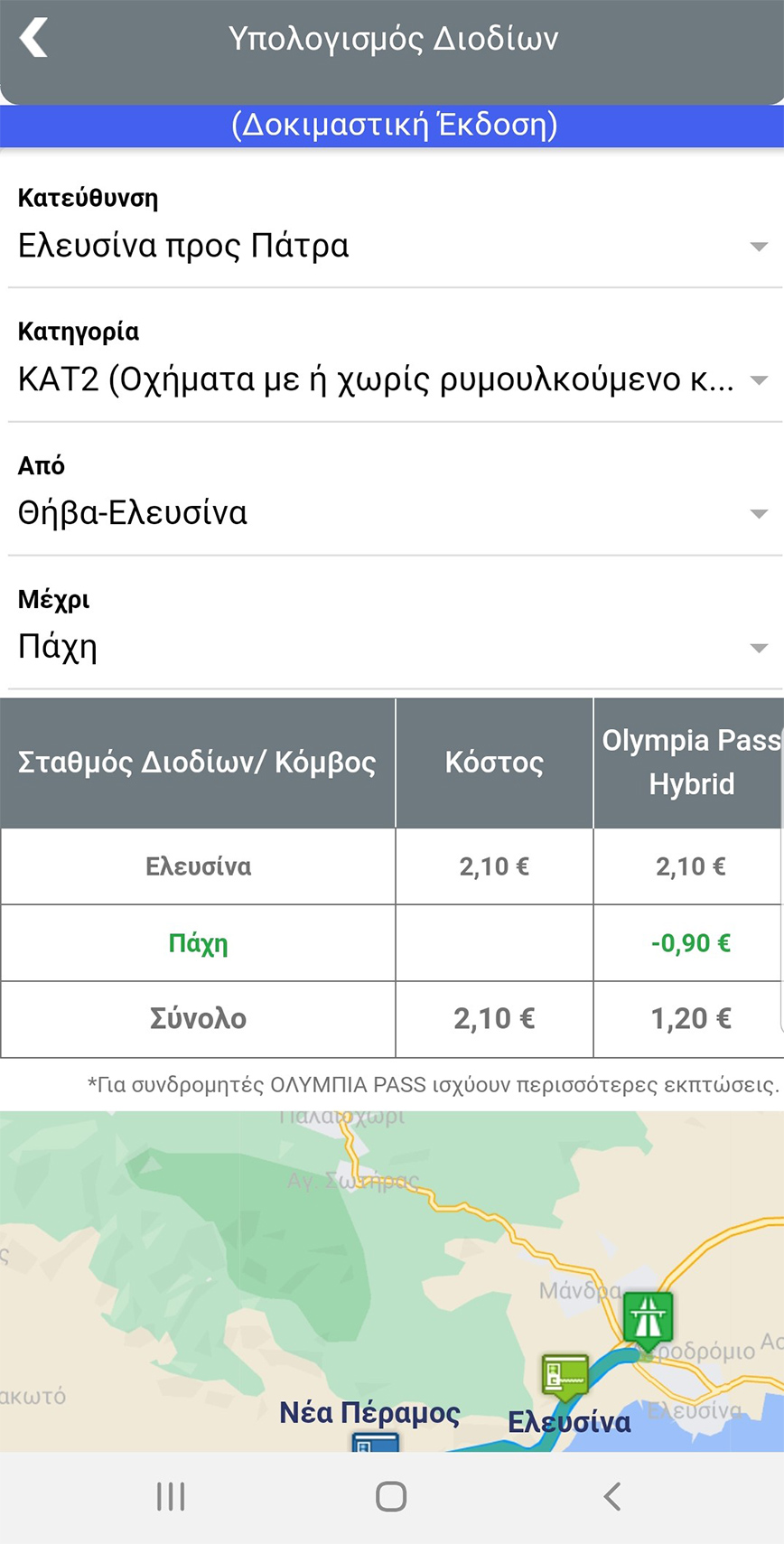 Το Olympia Odos App είναι διαθέσιμο δωρεάν για λειτουργικά συστήματα iOS και Android.