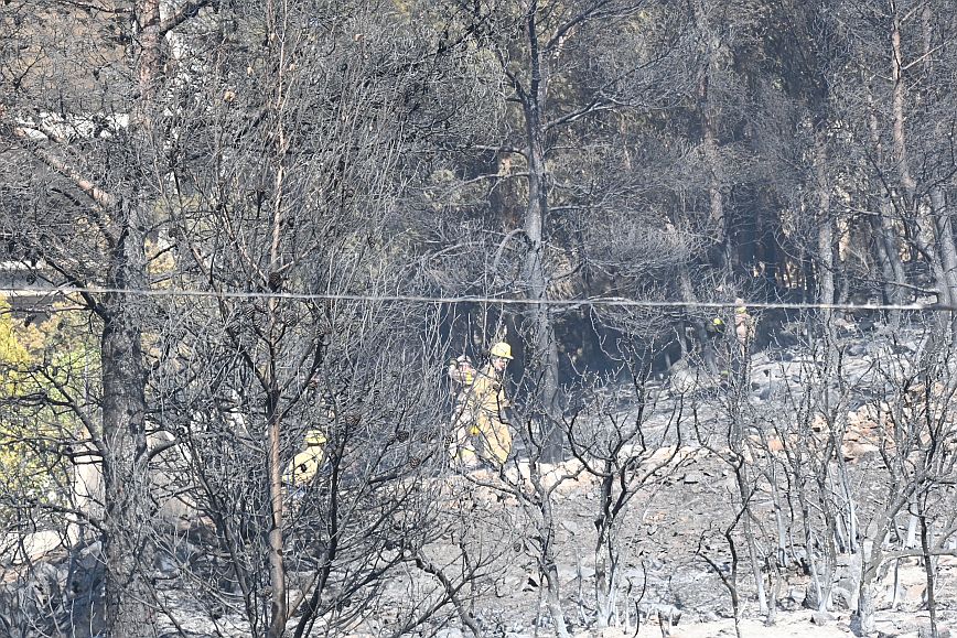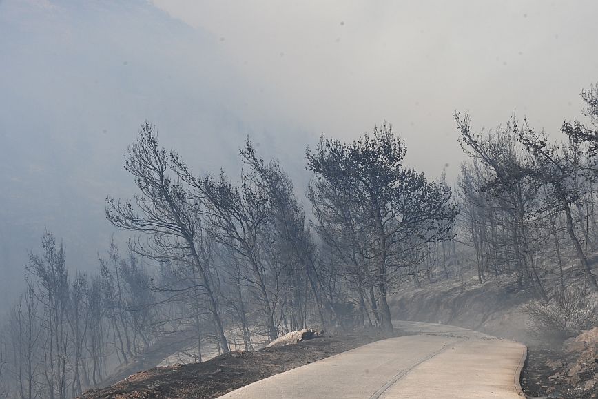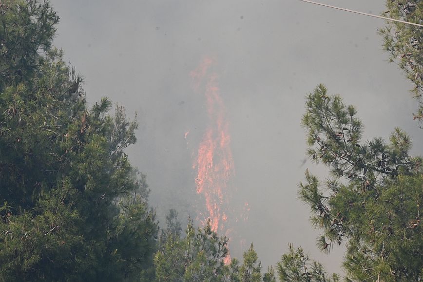 Μεγάλη αναζωπύρωση σημειώθηκε πριν από λιγη ώρα, καθώς το πύρινο μέτωπο «συνάντησε» πεύκα και άλλες μικρές εστίες με αποτέλεσμα να σημάνει εκ νέου συναγερμός.