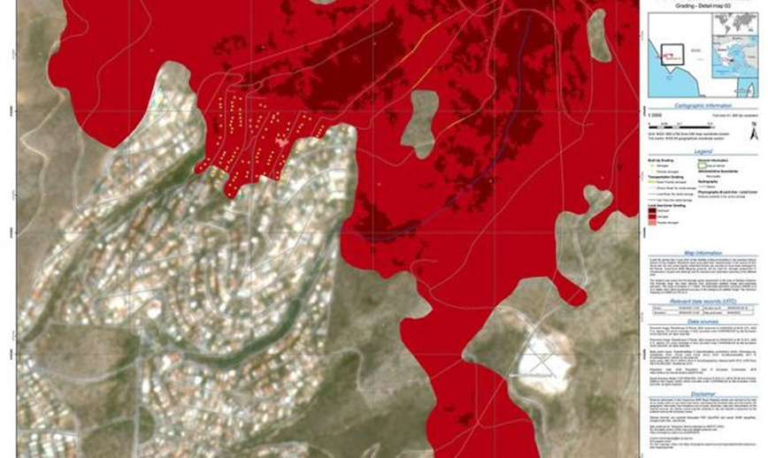 Στον χάρτη της Υπηρεσίας Copernicus αποτυπώνεται με λεπτομέρειες η έκταση που κάηκε, καθώς και κτίρια που πιθανώς έχουν πληγεί μέσα στον αστικό ιστό στην ‘Ανω Βούλα, κάτι που όμως δεν είναι αξιόπιστο, καθώς η φωτογραφία είναι από πάνω, γι’ αυτό γίνεται καταμέτρηση των ζημιών δρόμο- δρόμο, από την Πυροσβεστική, τον δήμο και την Περιφέρεια, ώστε να αποζημιωθούν οι πληγέντες.