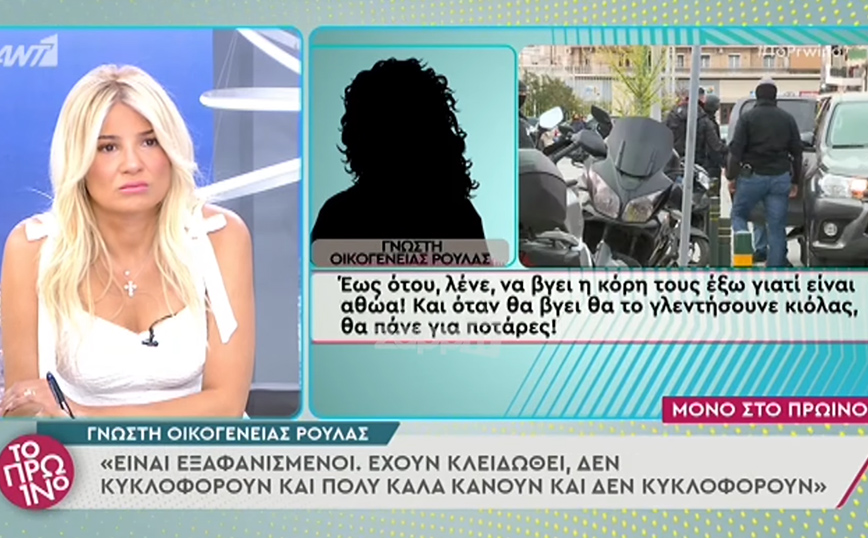 «Οι δικοί της είναι εξαφανισμένοι. Έχουν κλειδωθεί, δεν κυκλοφορούν και πολύ καλά κάνουν και δεν κυκλοφορούν. Έως ότου, λένε, να βγει η κόρη τους έξω γιατί είναι αθώα. Και όταν βγει θα το γλεντήσουνε κιόλας, θα πάνε για ποτάρες!», είπε χαρακτηριστικά γνωστή της οικογένειας της Ρούλας Πισπιρίγκου, μιλώντας στην εκπομπή «Το Πρωινό».