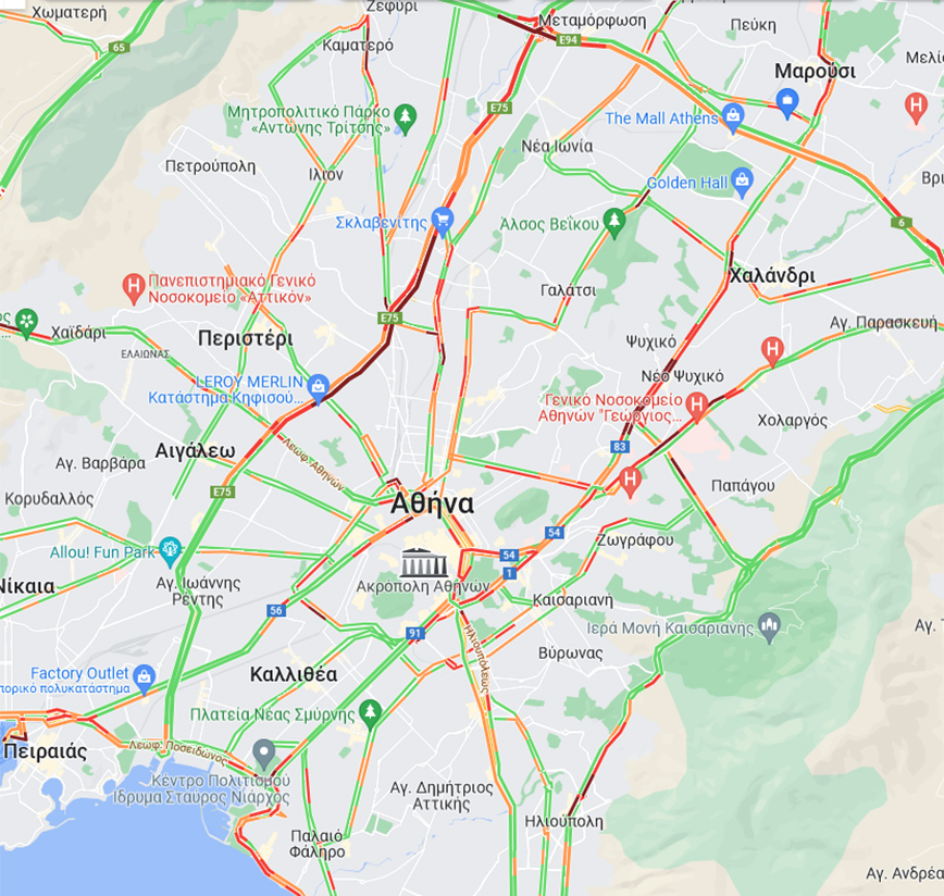 Ο χάρτης με την εικόνα στους δρόμους αυτή την ώρα…