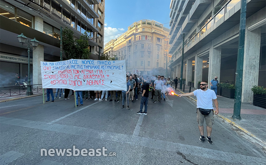 Στο κέντρο της Αθήνας είναι πορεία σε εξέλιξη από φοιτητές που διαφωνούν με την δημιουργία πανεπιστημιακής αστυνομίας, με την Αστυνομία να προχωράει σε εφαρμογή κυκλοφοριακών ρυθμίσεων.