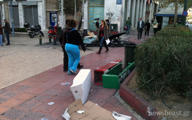 Τι κι αν πέρασαν δύο 24ωρα από τα επεισόδια; Οι αρμόδιοι… ξέχασαν να δώσουν εντολή για να απομακρυνθούν τα σπασμένα μάρμαρα, τα καμένα κιόσκια, οι κατεστραμμένοι τηλεφωνικοί θάλαμοι και οι σπασμένες στάσεις λεωφορείων από τους δρόμους της κατά τ’ άλλα γιορτινής Αθήνας, που φιλοδοξεί να προσελκύσει τους καταναλωτές ενόψει των Χριστουγέννων.