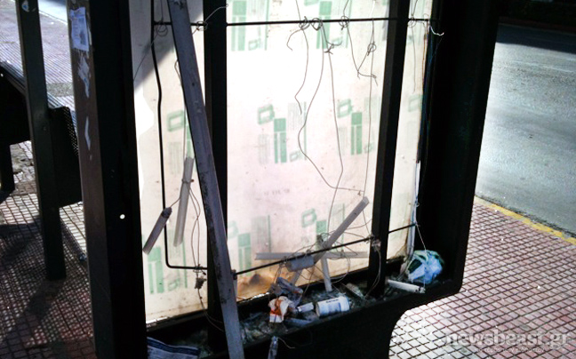 Ούτε τα σπασμένα γυαλιά από τις στάσεις των λεωφορείων δεν έχουν καθαριστεί