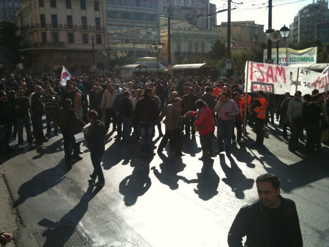 Κλειστές για τους οδηγούς είναι αυτή τη στιγμή η Σταδίου και η Πειραιώς από το ύψος της Σωκράτους αφού αρχίζει η συγκέντρωση των εργαζομένων στα Μέσα Μαζικής Μεταφοράς στην πλατεία Κλαυθμώνος.