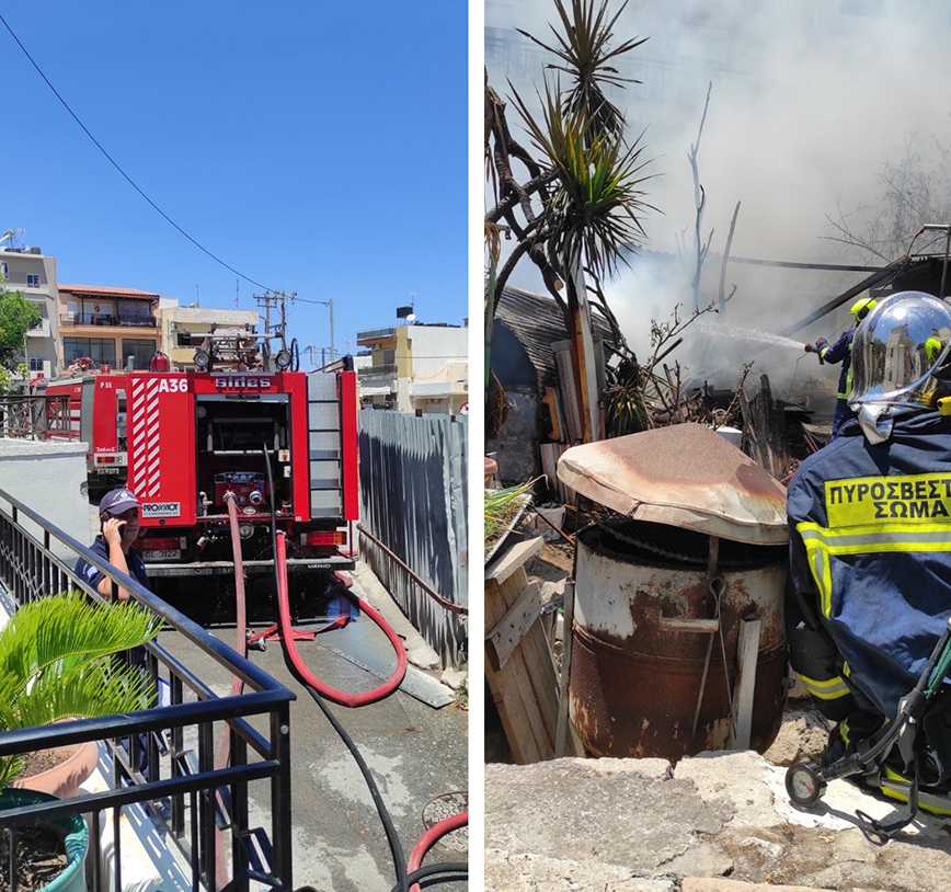 Μεγάλη επιχείρηση της Πυροσβεστικής στήθηκε νωρίτερα το μεσημέρι στην περιοχή Πόρος του Ηρακλείου Κρήτης, όπου ξέσπασε φωτιά σε αποθήκη που βρισκόταν μέσα σε οικόπεδο, σε μια από τις πιο πυκνοκατοικημένες γειτονιές της περιοχής.