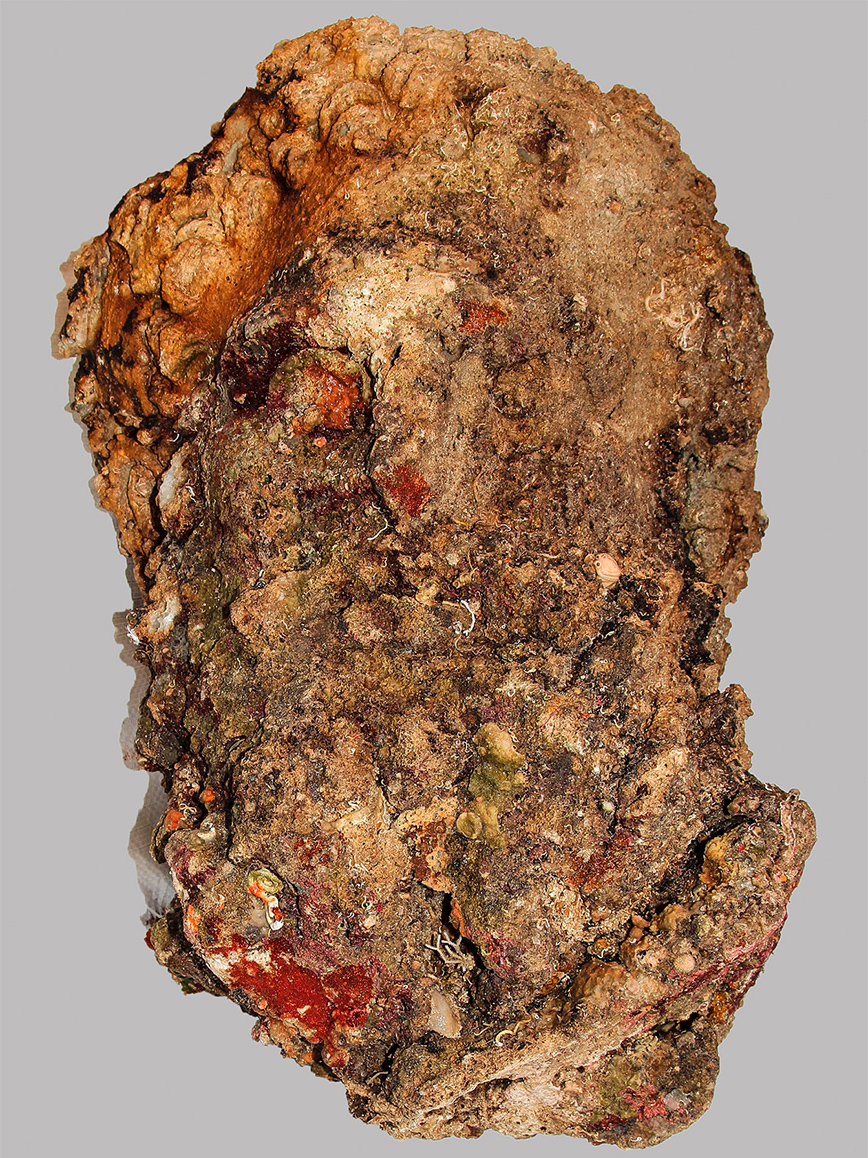 Μαρμάρινη βάση αγάλματος της οποίας σώζονται και τα δύο γυμνά κάτω άκρα ανθρώπινης μορφής, καλυμμένη με παχύ στρώμα θαλάσσιου επίπαγου. Για τον λόγο αυτό δεν είναι δυνατή η λεπτομερής περιγραφή.