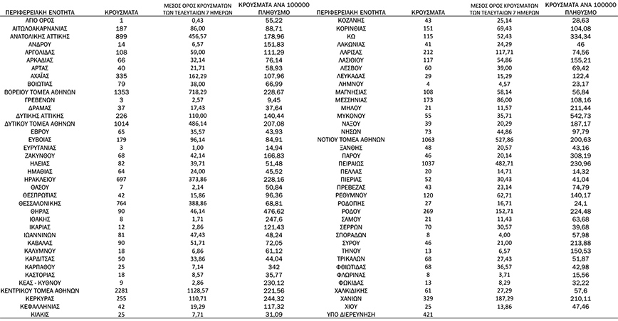Οι περιοχές με αυξήσεις στα κρούσματα