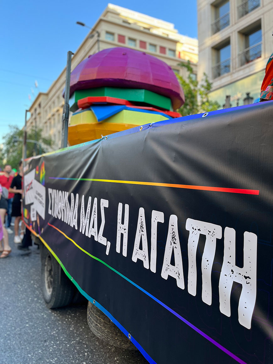 Το εντυπωσιακό άρμα των Goody’s Burger House έδωσε το ρυθμό ξεσηκώνοντας το κοινό της πολύχρωμης πορείας, ενώ η παρέλαση ζωντάνεψε ακόμα περισσότερο από τα αμέτρητα πλακάτ που μετέφεραν μηνύματα αγάπης και δημιουργήθηκαν μέσα από το ειδικά σχεδιασμένο site sinthimaagapis.gr.