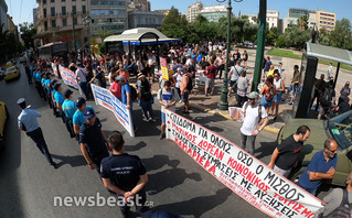 Η πορεία αυτή τη στιγμή βρίσκεται μπροστά από το ξενοδοχείο «Τιτάνια» και μετακινούνται προς τη Σταδίου. Η παρουσία της αστυνομίας είναι διακριτική και ακολουθεί την πορεία.