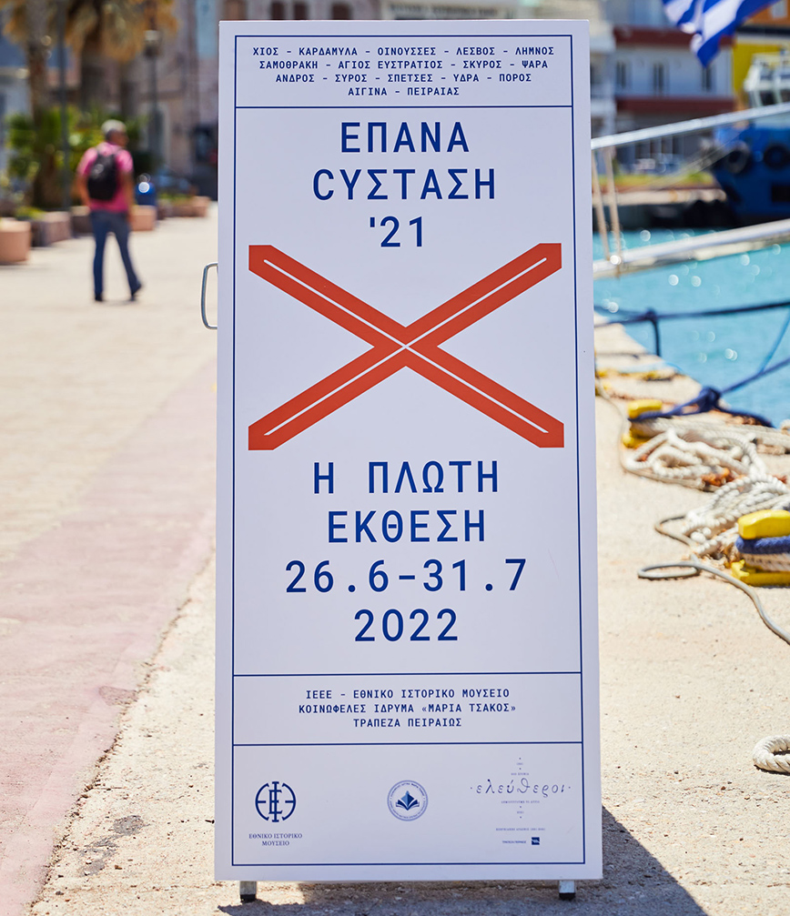 Η έκθεση φιλοξενείται στο εκπαιδευτικό ιστιοφόρο «Μάνια» του Ναυτικού Λυκείου TEENS. Κειμήλια όπως ο Σταυρός του Μιαούλη, επαναστατικές σημαίες, ναυτικά όργανα και όπλα, ημερολόγια και σηματολόγια πλοίων του Αγώνα, θα ταξιδέψουν στο Αιγαίο από τις 26 Ιουνίου, καταλήγοντας στον Πειραιά στις 31 Ιουλίου 2022. Την έκθεση συνοδεύει, σχεδόν σε όλη τη διάρκεια του πλου, η ιστορικός, καθηγήτρια του ΕΚΠΑ κα. Μαρία Ευθυμίου.