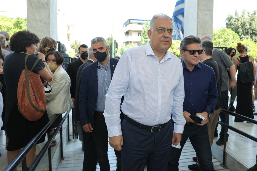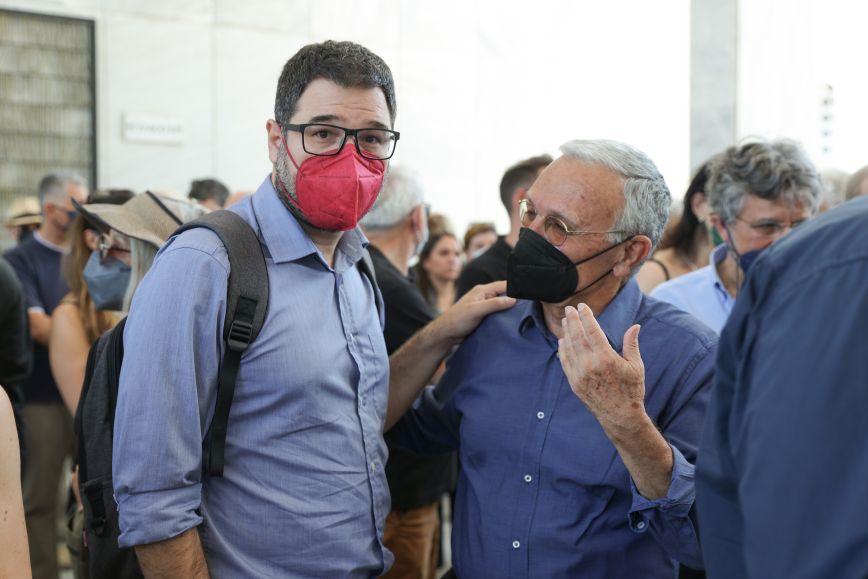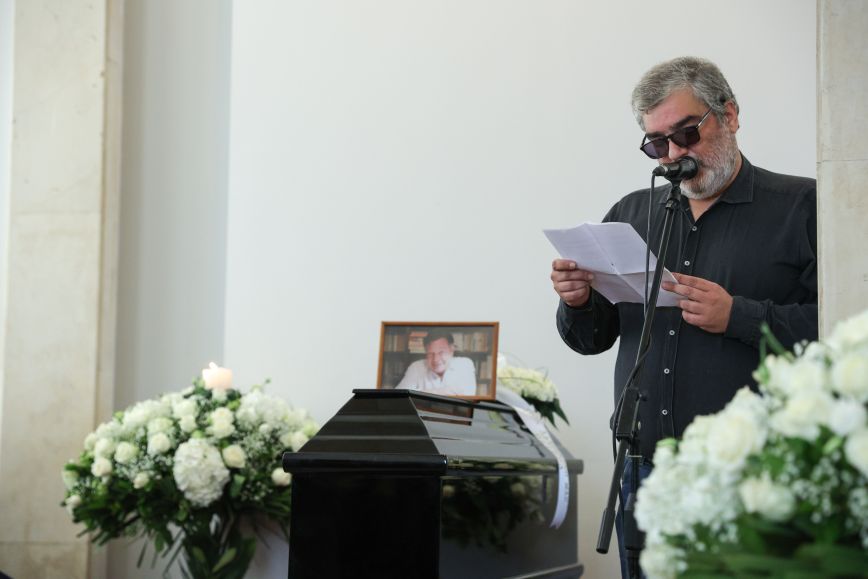 Τους επικήδειους εκφώνησαν ο αρχηγός της αξιωματικής αντιπολίτευσης Αλέξης Τσίπρας, ο υφυπουργός Ψηφιακής Διακυβέρνησης (και παλαιός συνεργάτης του) Θοδωρής Λιβάνιος, ο κοινωνιολόγος και πανεπιστημιακός Κωνσταντίνος Τσουκαλάς, ο ομότιμος καθηγητής Ψυχιατρικής, Δημήτρης Πλουμπίδης, ο διευθυντής των Αρχείων Σύγχρονης Κοινωνικής Ιστορίας, Κώστας Καρπόζηλος και ο διδάκτωρ Πολιτικής Επιστήμης, Παναγιώτης Κουστένης.