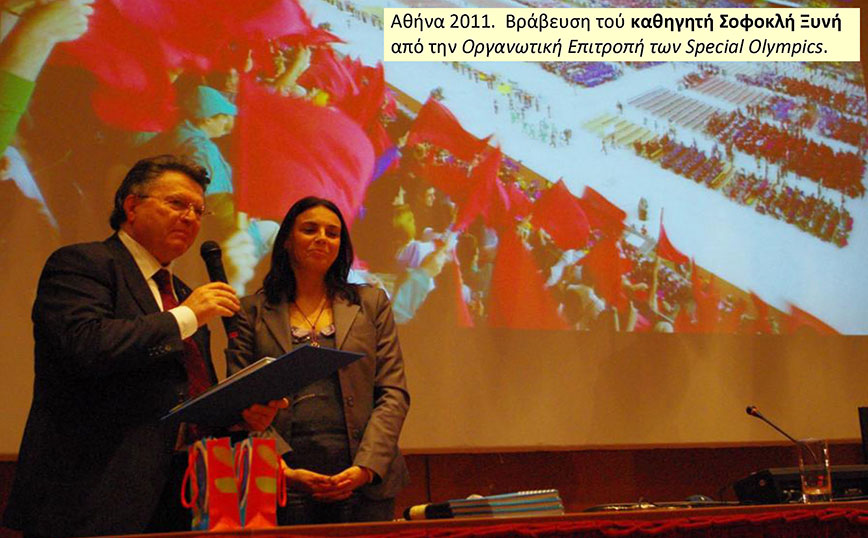 Μετέπειτα, ο Εκπαιδευτικός ΟΜΙΛΟΣ ΞΥΝΗ υπεστήριξε ενεργά τους Special Olympics που διεξήχθηκαν στην Αθήνα το 2011 (25 Ιουνίου – 4 Ιουλίου), με συμμετοχή 7.500 αθλητών από 185 χώρες: Περισσότεροι από 100 σπουδαστές του Εκπαιδευτικού Ομίλου ΞΥΝΗ συμμετείχαν ως εθελοντές στη διεξαγωγή των αγώνων. Σε εκείνο το πλαίσιο, το 2011 ο Εκπαιδευτικός Όμιλος ΞΥΝΗ τιμήθηκε από τον Σ.Ε.Γ.Α.Σ. και ο καθηγητής Σοφοκλής Ξυνής από την Οργανωτική Επιτροπή των Special Olympics για την «πολύτιμη υποστήριξή του στον Ελληνικό Κλασικό Αθλητισμό».