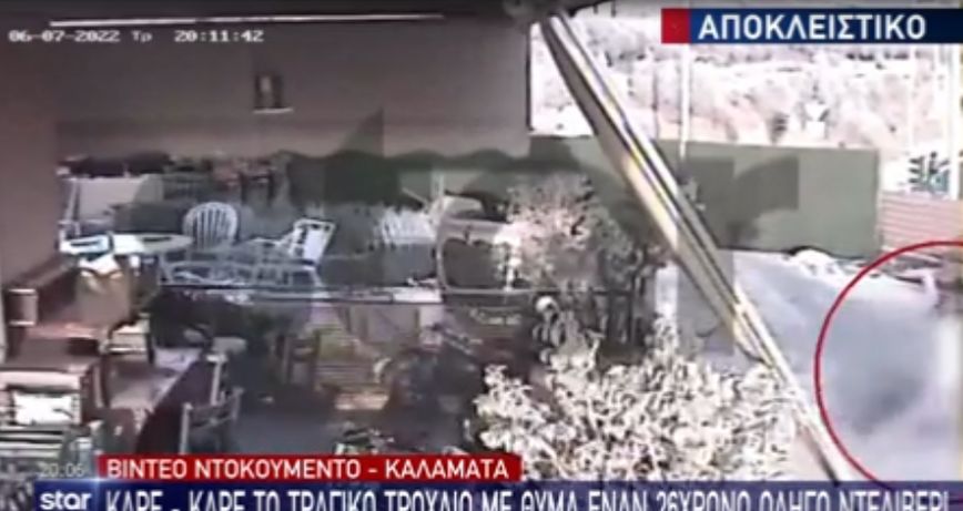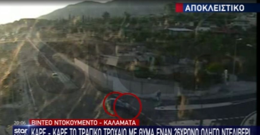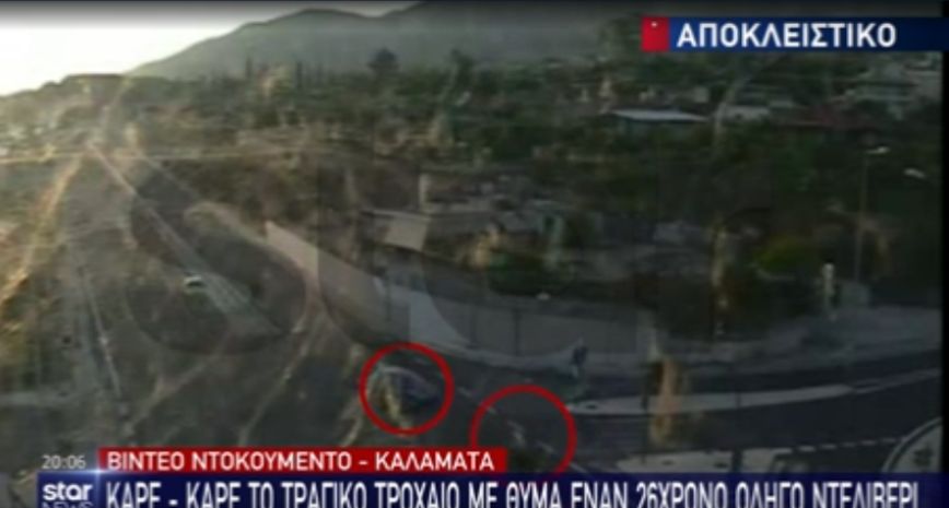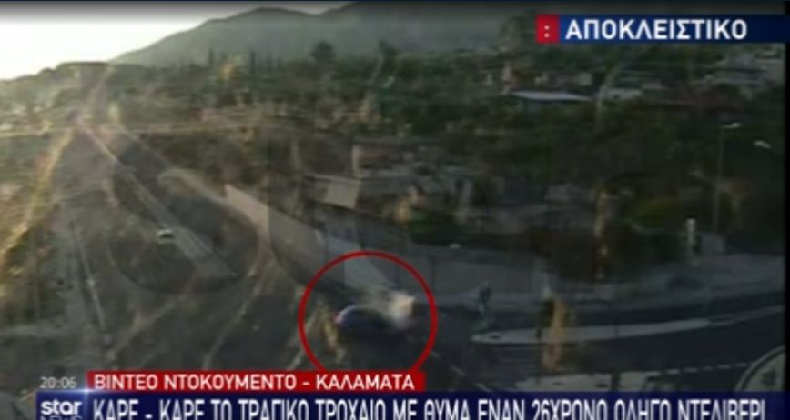 Στο κεντρικό δελτίο ειδήσεων του STAR φαίνεται το αυτοκίνητο που ήταν σταματημένο στο φανάρι, να ξεκινάει την πορεία του και να στρίβει αριστερά προς την κάθετη οδό. Εκείνη την ώρα φαίνεται ο 26χρονος να περνάει με την μηχανή του, ερχόμενος από το αντίθετο ρεύμα, και να πέφτει πάνω στο όχημα.