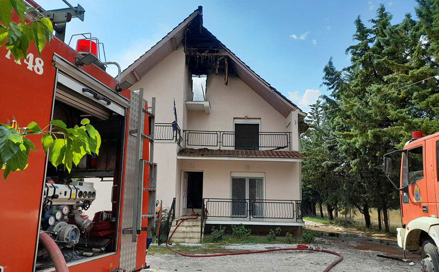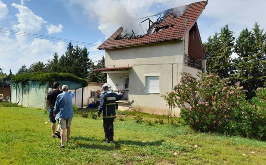 Κεραυνός χτύπησε σπίτι λίγο έξω από τη Λάρισα και άνοιξε τρύπα στην οροφή, με τα κεραμίδια να καίγονται.