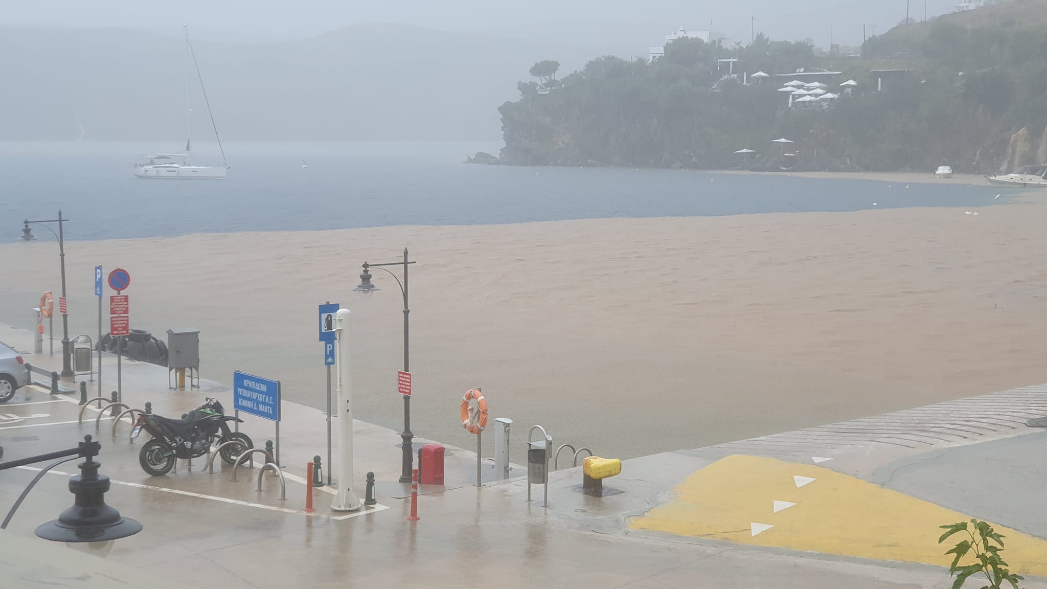 Όπως θα δείτε στις παρακάτω εικόνες και βίντεο που έχουν ανεβάσει κάτοικοι του νησιού στο facebook, η κακοκαιρία έδειξε τα δόντια της στη Σκύρο.