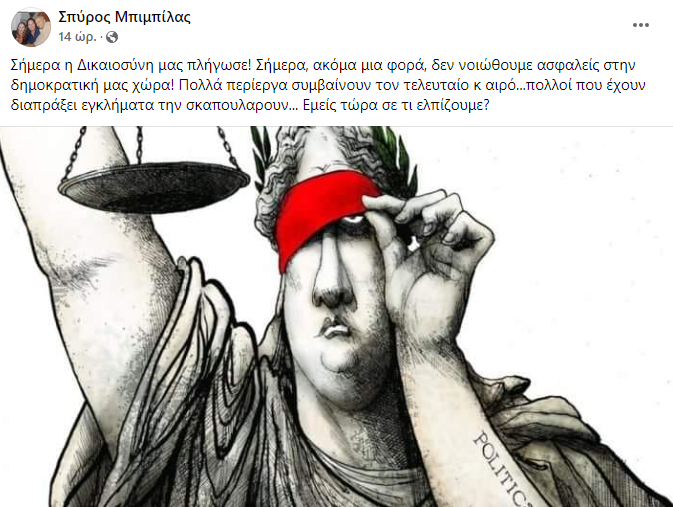 Παράλληλα, πρόεδρος του ΣΕΗ, Σπύρος Μπιμπίλας, σε ανάρτησή του στο facebook ανέφερε πως: η Δικαιοσύνη μας πλήγωσε! Σήμερα, ακόμα μια φορά, δεν νοιώθουμε ασφαλείς στην δημοκρατική μας χώρα! Πολλά περίεργα συμβαίνουν τον τελευταίο καιρό… πολλοί που έχουν διαπράξει εγκλήματα την σκαπουλάρουν… Εμείς τώρα σε τι ελπίζουμε;»