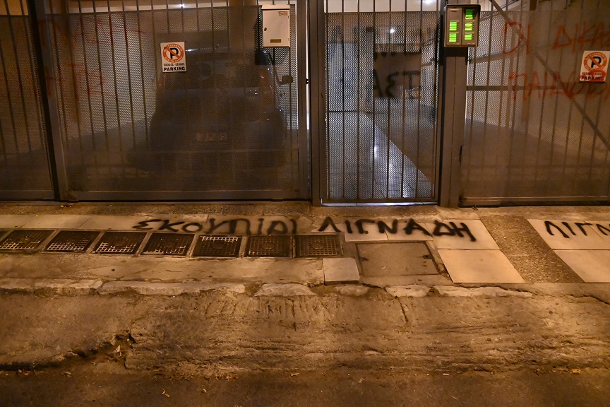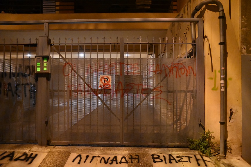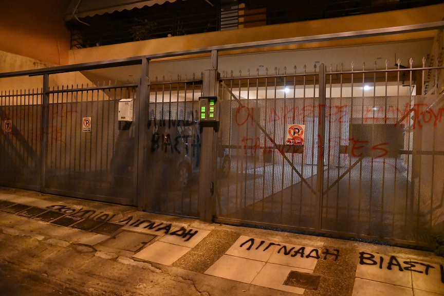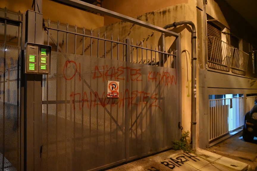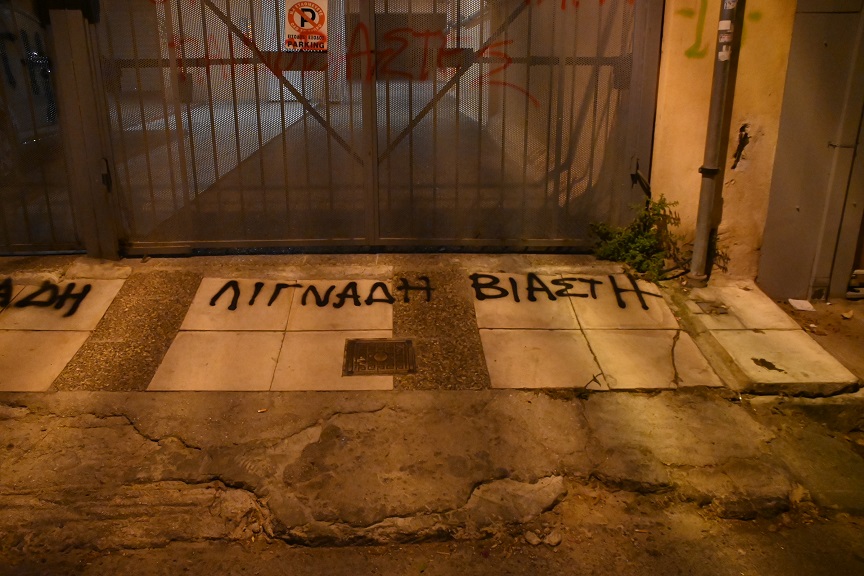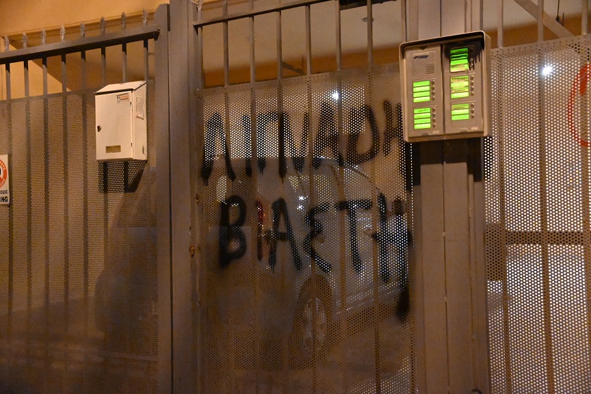 Όπως φαίνεται και στα πλάνα του βίντεο, τα μέλη της συλλογικότητας έγραψαν συνθήματα στους τοίχους του σπιτιού.