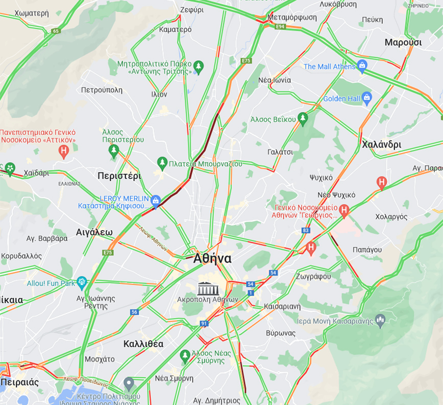 Ο χάρτης με την εικόνα στους δρόμους αυτή την ώρα…