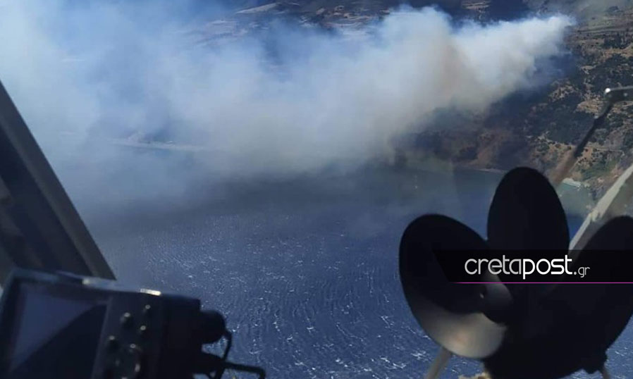 Ισχυρές δυνάμεις της Πυροσβεστικής Υπηρεσίας με τα τρία ελικόπτερα της Κρήτης (Ηράκλειο, Χανιά και του ΕΜΟΔΕ) έχουν ριχτεί στη μάχη με τις φλόγες προκειμένοου να περιορίσουν το μέτωπο της πυρκαγιάς που κατακαίει από νωρίς το πρωί την περιοχή.