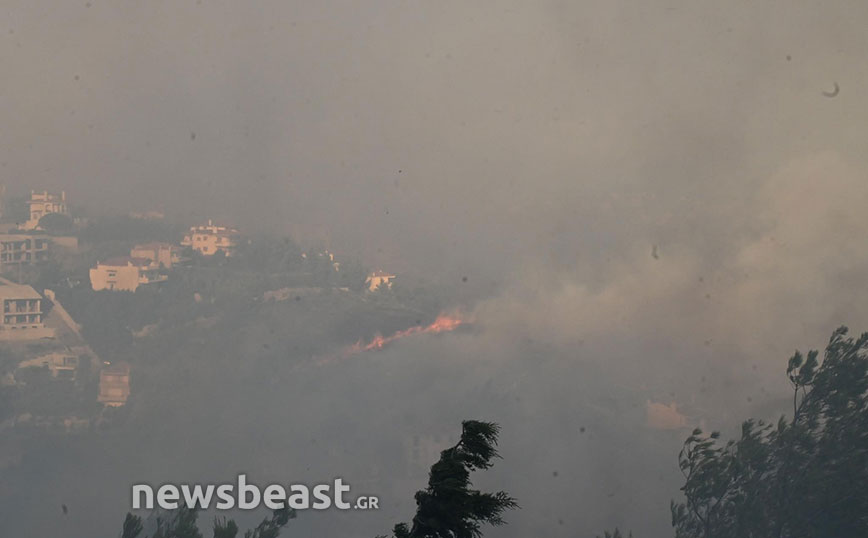 Σπίτια στην Πεντέλη έχουν παραδοθεί στις φλόγες, καθώς το πύρινο μέτωπο κινείται με μεγάλη ταχύτητα και οι άνεμοι στην ευρύτερη περιοχή παραμένουν εξαιρετικά θυελλώδεις.