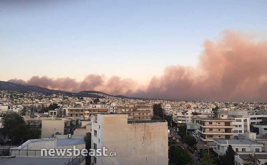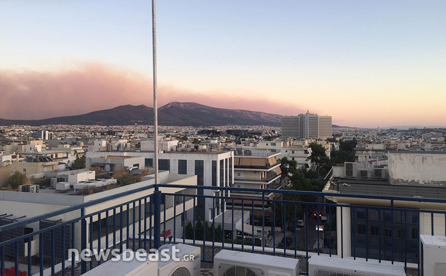 Οι καπνοί από τη φωτιά έφτασαν μέχρι και τον Υμηττό και ήταν ορατοί από όλες τις περιοχές στα βόρεια της Αθήνας.