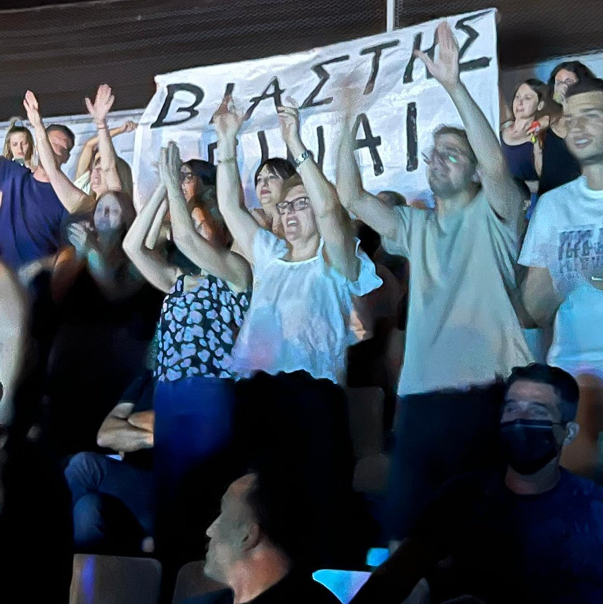 Αυτή τη φορά, όπως αναφέρει το larissanet.gr, πολίτες που παρακολούθησαν τη συναυλία του Σωκράτη Μάλαμα στο Κηποθέατρο Αλκαζάρ στη Λάρισα, σήκωσαν πανό στο οποίο αναγραφόταν «βιαστής είναι».