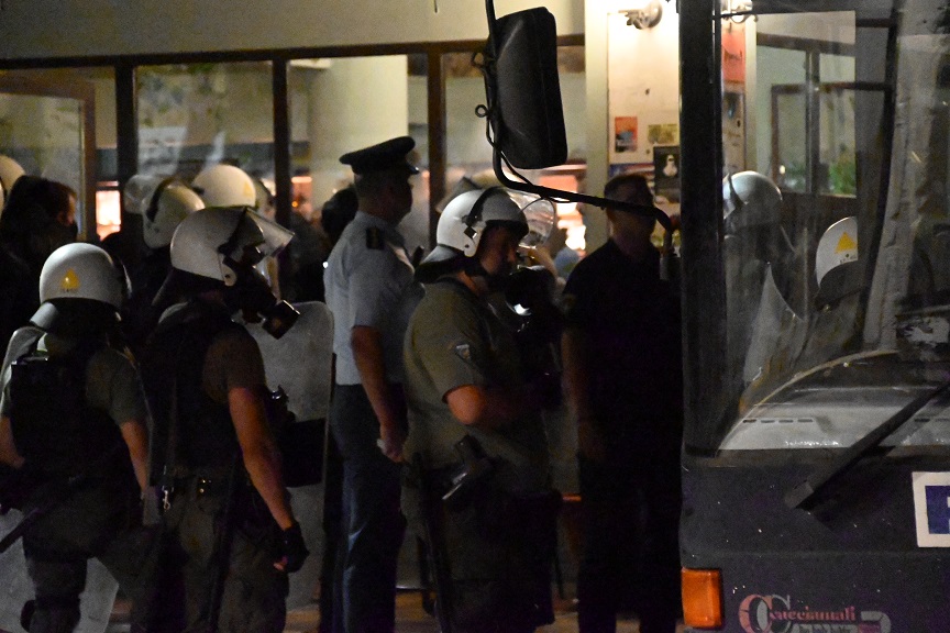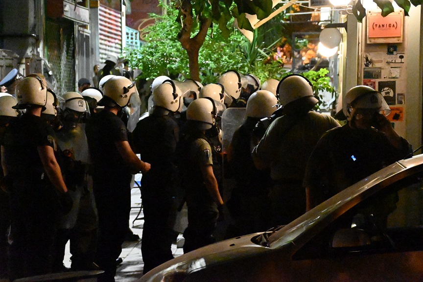 Ένταση σημειώθηκε το βράδυ της Παρασκευής (22/7) στην πλατεία Εξαρχείων, όπου είχε προγραμματιστεί συγκέντρωση κατά των βιασμών.