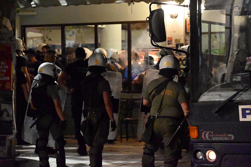 Στη συνέχεια ορισμένα άτομα από το πλήθος που συγκεντρώθηκε, κατευθύνθηκε σε καφενείο της περιοχής, με την Αστυνομία να έχει ζητήσει την συνδρομή εισαγγελέα, ώστε να μπορέσει να μπει μέσα στην επιχείρηση.