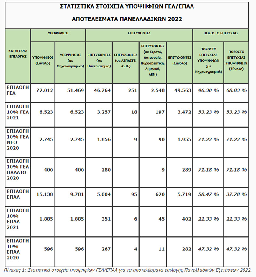 Οι πίνακες για ΓΕΛ και ΕΠΑΛ