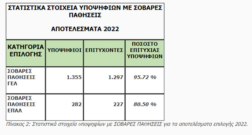 Αποτελέσματα υποψηφίων με σοβαρές παθήσεις για εισαγωγή στην Τριτοβάθμια Εκπαίδευση