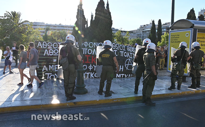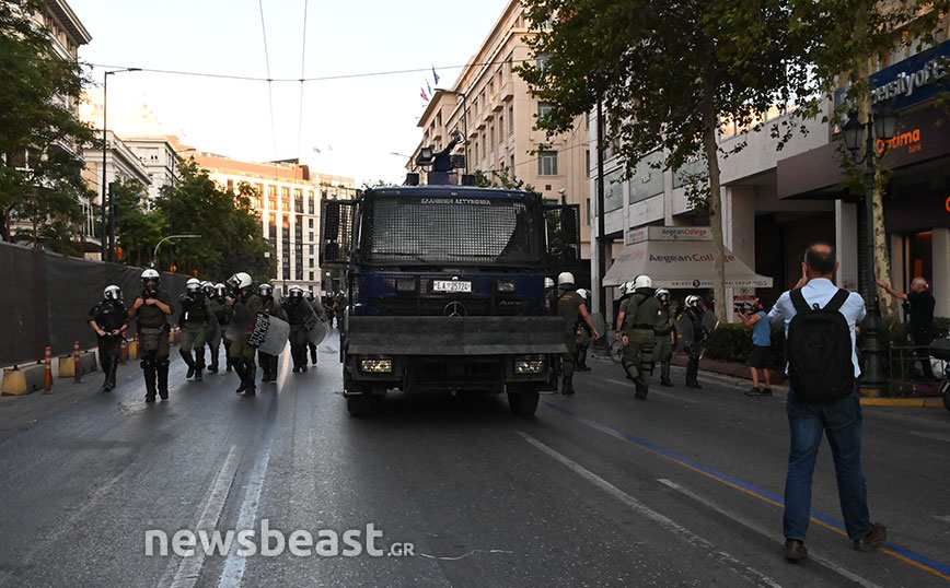 Μόλις ξεκίνησε η πορεία υπήρξε ένταση μεταξύ των διαδηλωτών και της αστυνομίας.