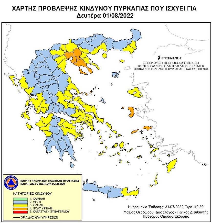 Παράλληλα, τίθεται σε εφαρμογή το 2ο στάδιο επιχειρησιακής ετοιμότητας του Π.Σ. και θα πραγματοποιηθούν περιπολίες εναέριας επιτήρησης, καθώς και περιπολίες από πυροσβεστικές, αστυνομικές και στρατιωτικές δυνάμεις.
